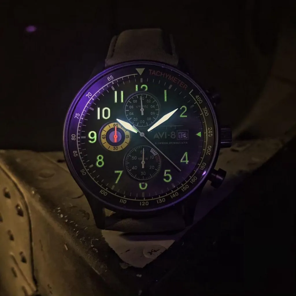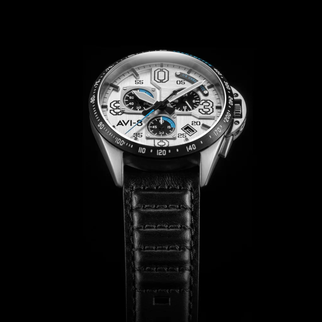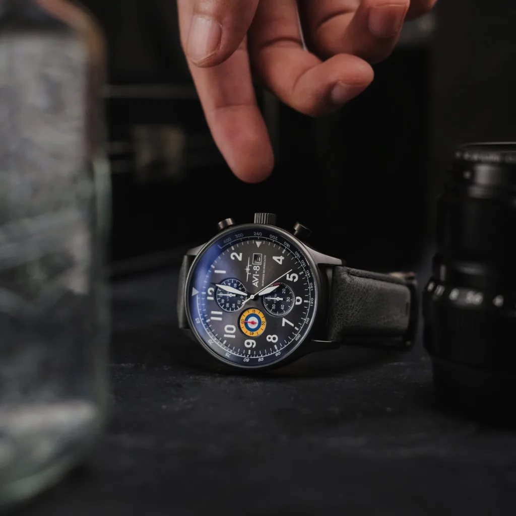 A tribute to what is maybe the most famous plane from World War II. The simplicity of the Hawker Hurricane Classic Chronograph’s design reminds one of that of its namesake. The dial is surrounded by strong, clean lines, and the colors and graphics highlight the fighter plane’s iconic, eye-catching design that helped identify the Hawker Hurricane.